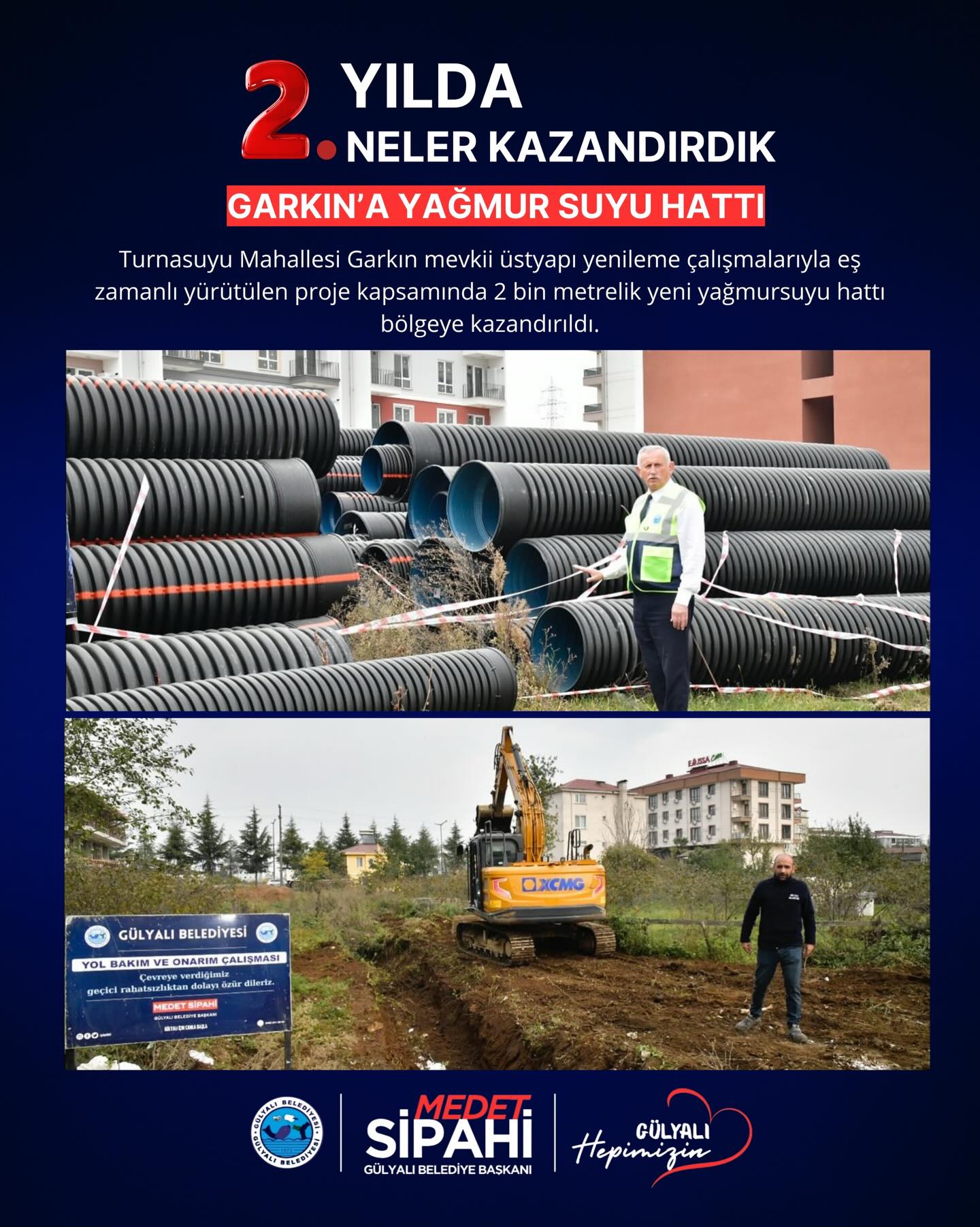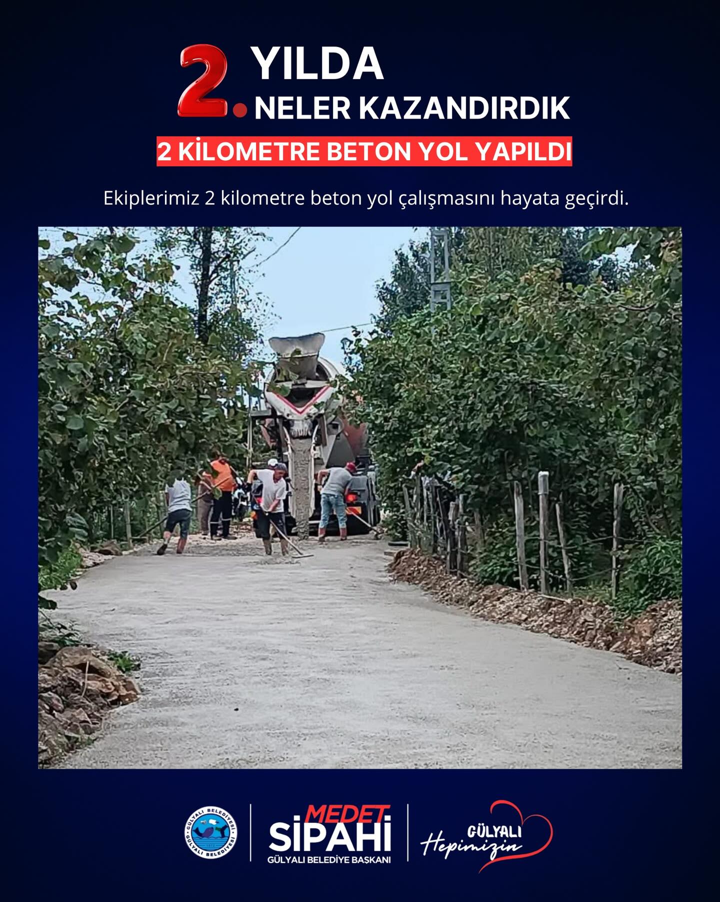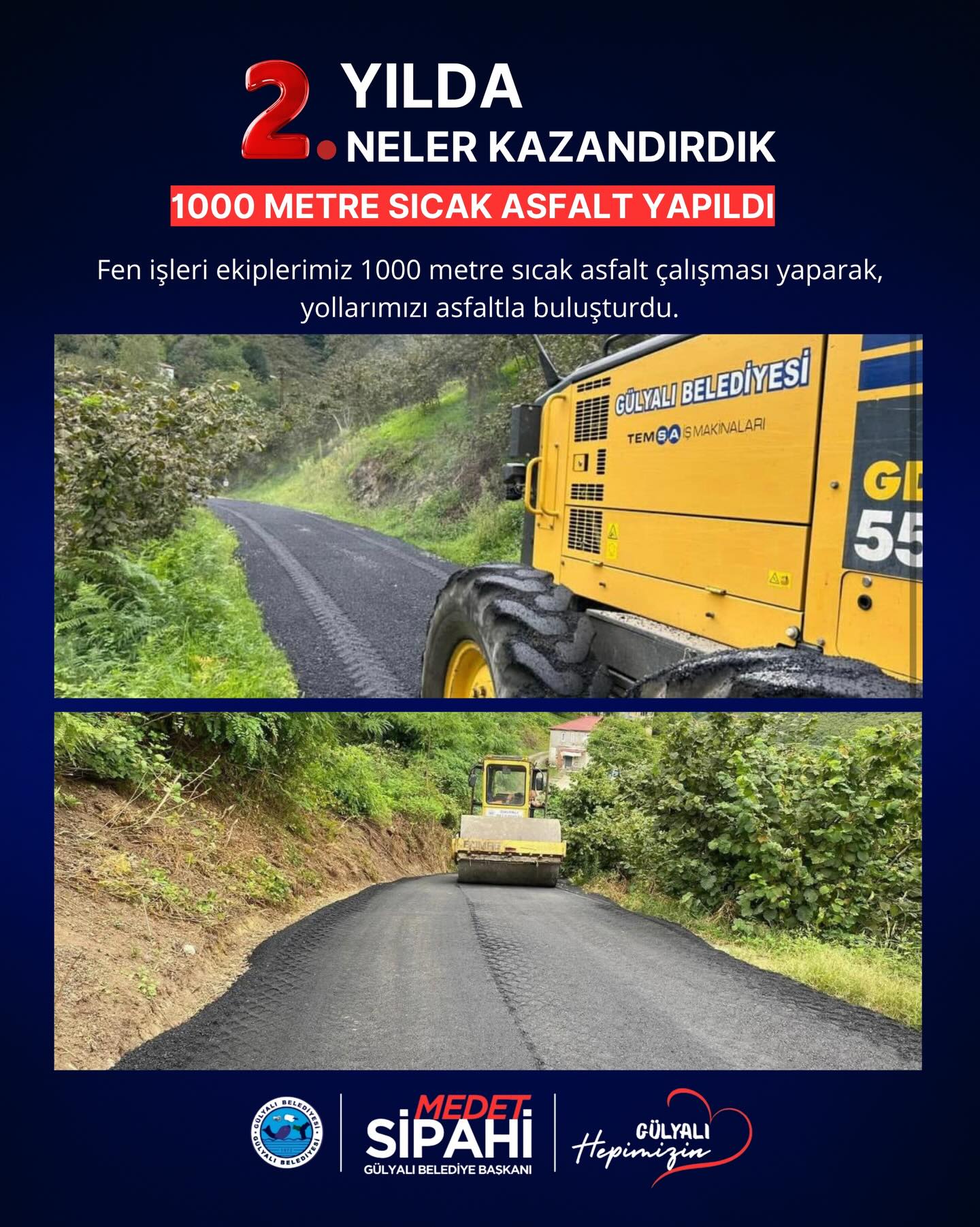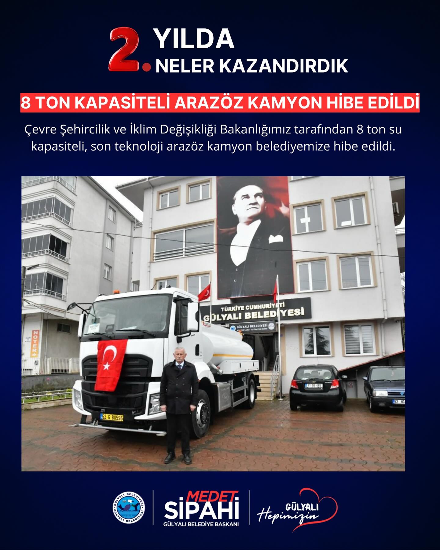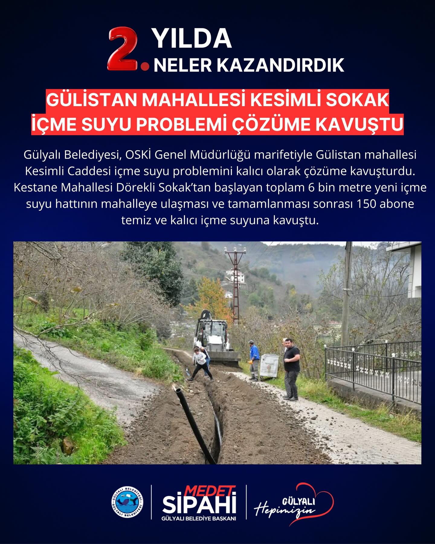 Başkan medet Sipahi; “ Göreve geldiğimiz andan itibaren şeffaf yönetim anlayışla Gülyalı’nın hizmetinde olduk. İlçemizin ihtiyaçları ve vatandaşlarımızdan gelen istekler doğrultusunda, altyapı ve üstyapı projelerinin hızlandırılması ve hayata geçirilmesi gibi konularda özveriyle çalışıyoruz. İki yılı geride bırakırken, hem mevcut projelerin tamamlanması hem de yeni yatırımların hayata geçirilmesi konusunda gayretle çalışacağız. Gülyalı halkına bir kez teşekkür ediyoruz, emanete sahip çıkacağız. Devraldığımız bu kutsal görevde, ilçemizi daha yaşanabilir, modern ve sürdürülebilir bir geleceğe taşıma kararlılığındayız. Şeffaf, katılımcı ve insan odaklı yönetim anlayışımızla, her bir vatandaşımızın sesine kulak vererek projelerimizi şekillendiriyoruz.”dedi.