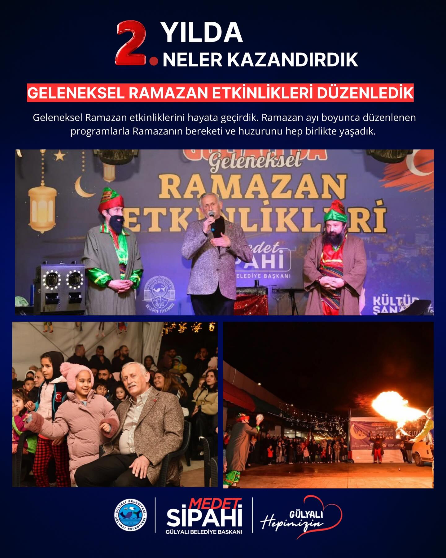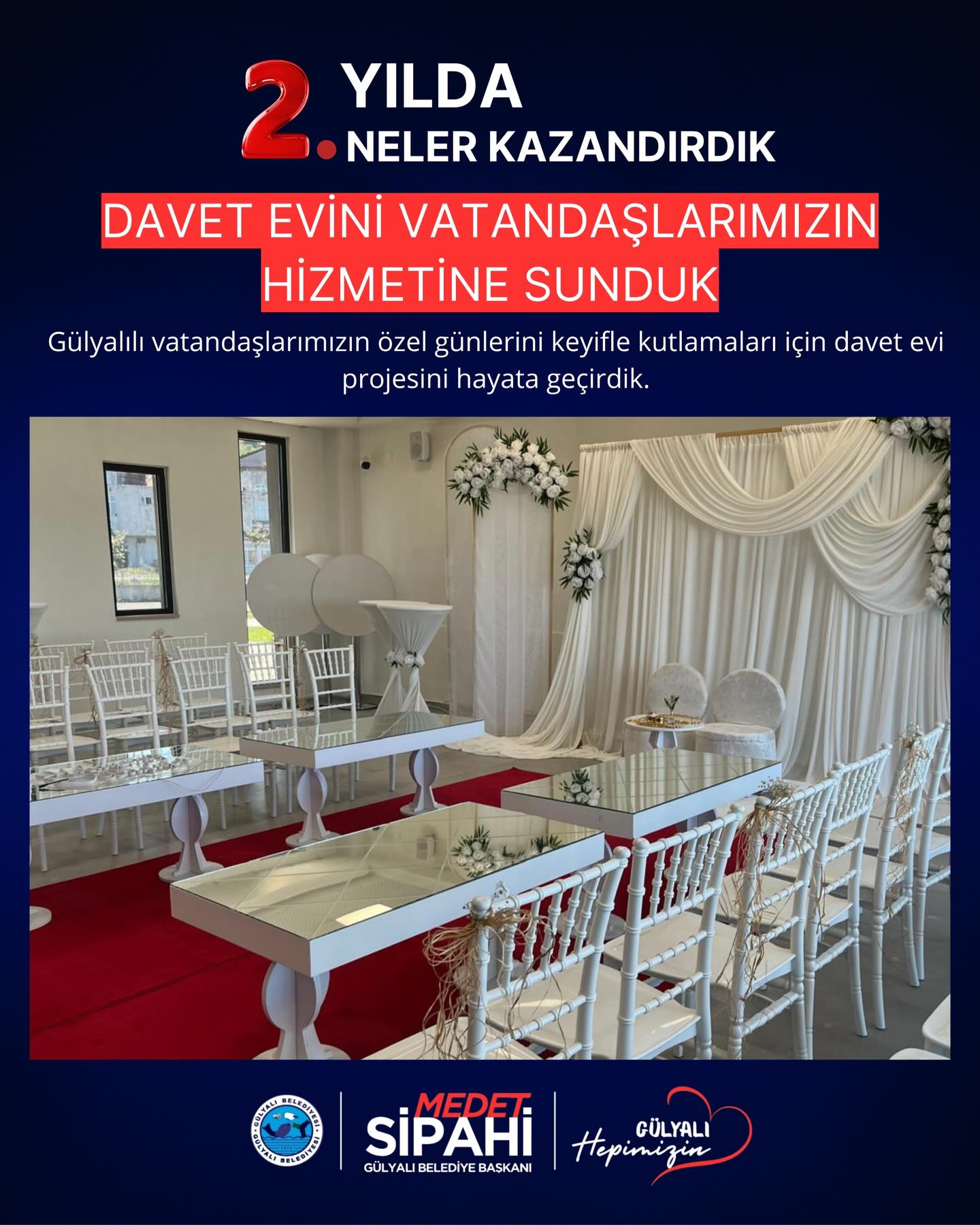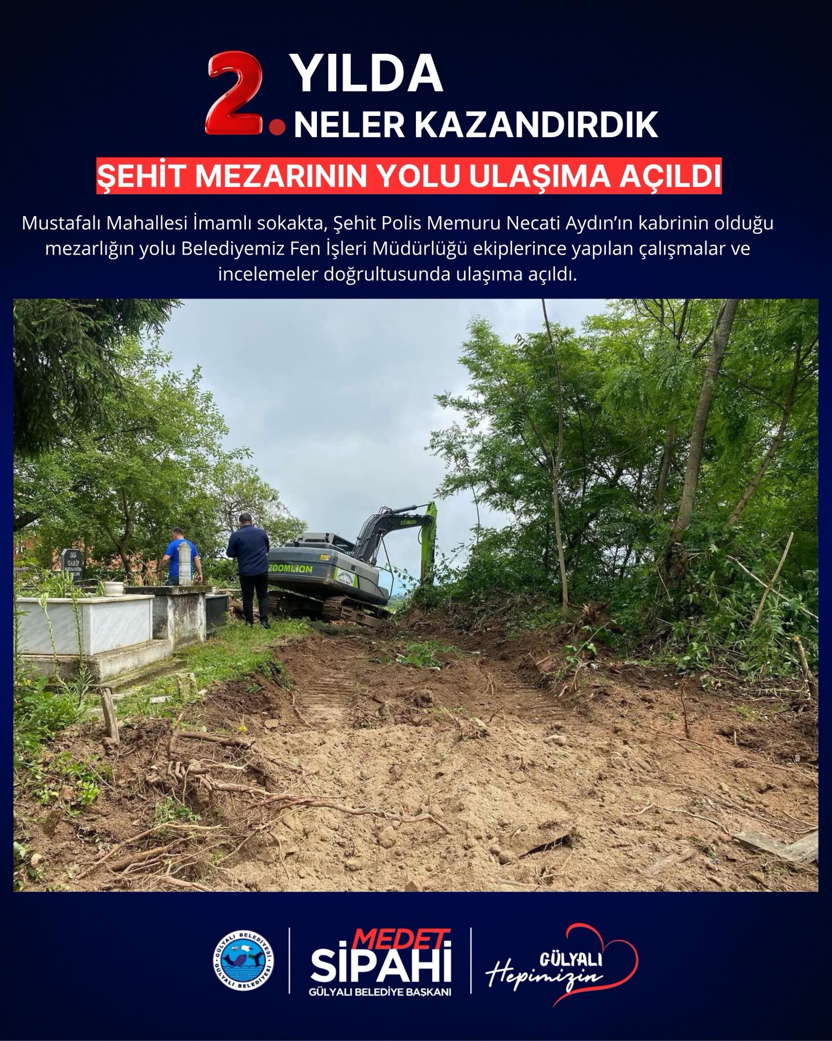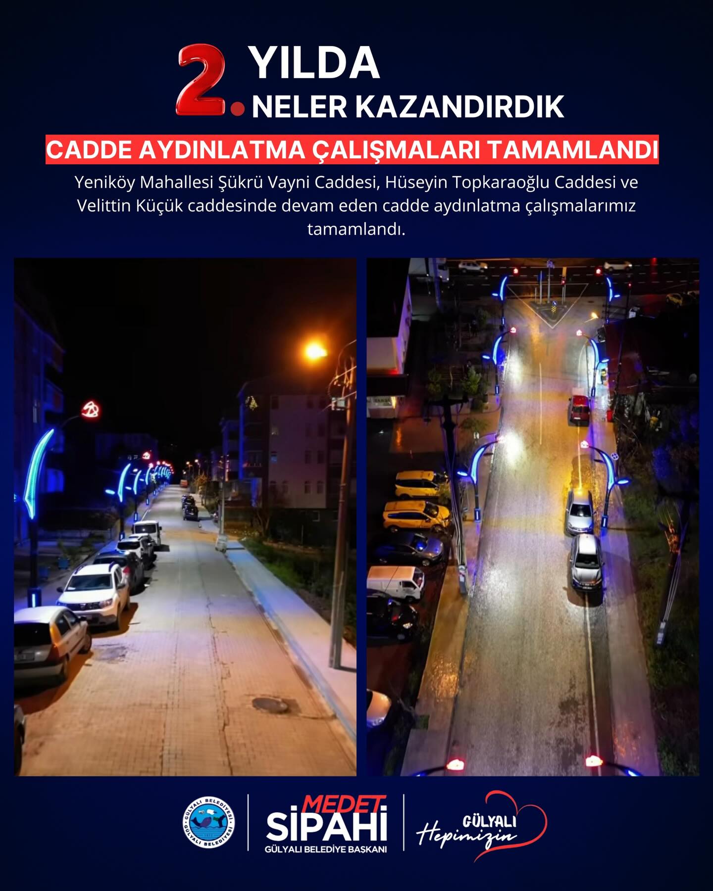 Başkan medet Sipahi; “ Göreve geldiğimiz andan itibaren şeffaf yönetim anlayışla Gülyalı’nın hizmetinde olduk. İlçemizin ihtiyaçları ve vatandaşlarımızdan gelen istekler doğrultusunda, altyapı ve üstyapı projelerinin hızlandırılması ve hayata geçirilmesi gibi konularda özveriyle çalışıyoruz. İki yılı geride bırakırken, hem mevcut projelerin tamamlanması hem de yeni yatırımların hayata geçirilmesi konusunda gayretle çalışacağız. Gülyalı halkına bir kez teşekkür ediyoruz, emanete sahip çıkacağız. Devraldığımız bu kutsal görevde, ilçemizi daha yaşanabilir, modern ve sürdürülebilir bir geleceğe taşıma kararlılığındayız. Şeffaf, katılımcı ve insan odaklı yönetim anlayışımızla, her bir vatandaşımızın sesine kulak vererek projelerimizi şekillendiriyoruz.”dedi.