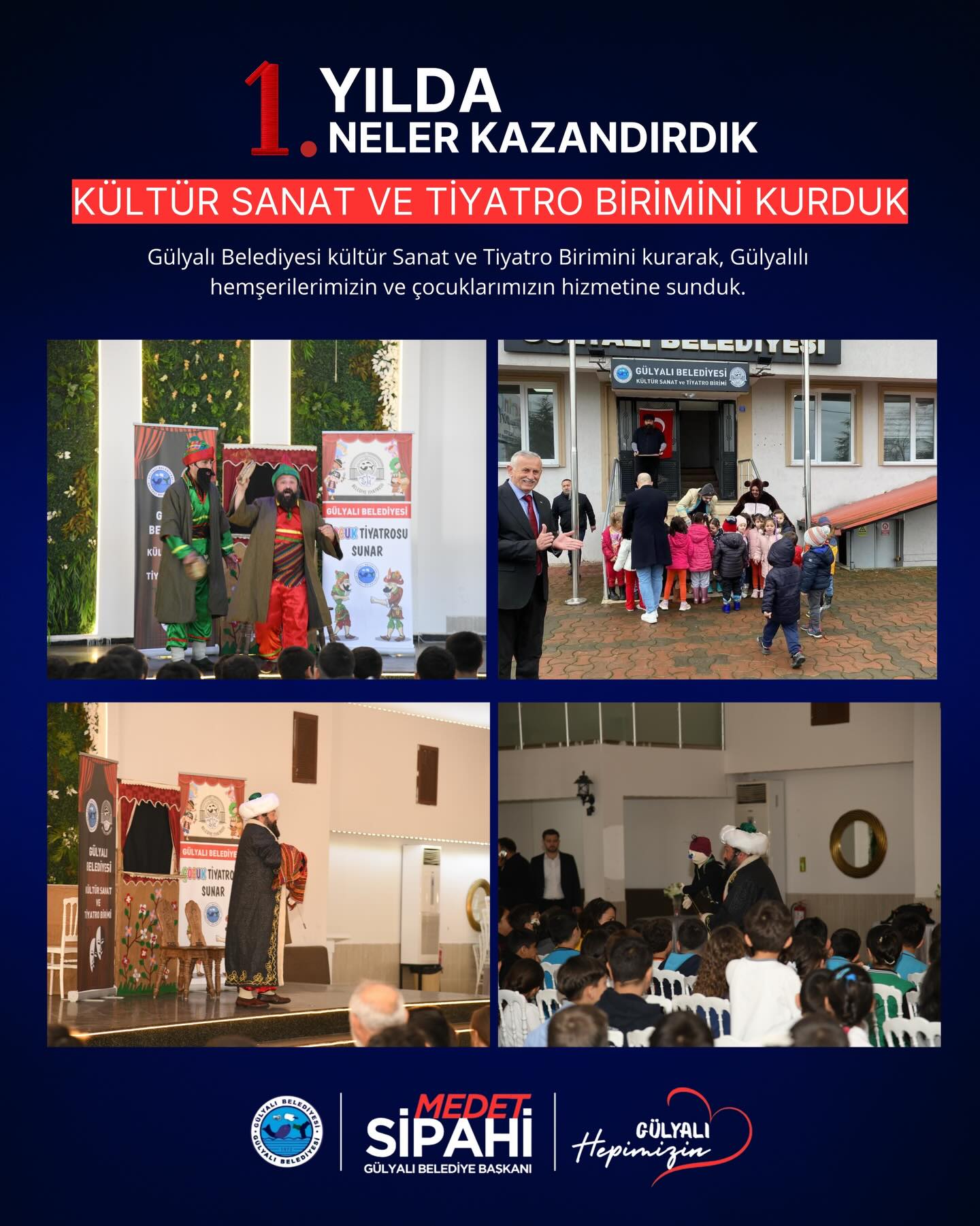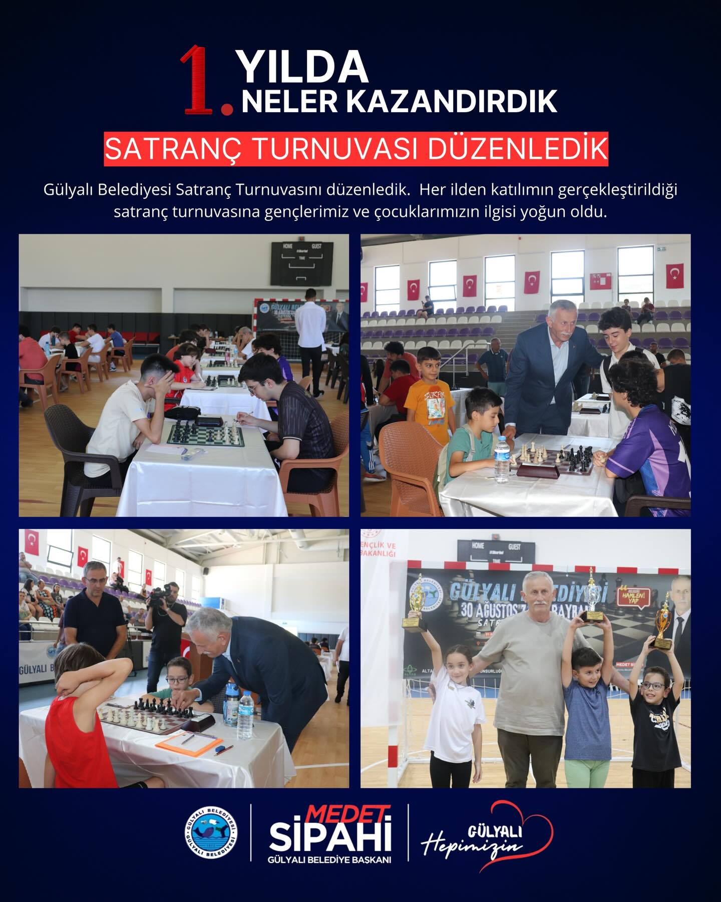 Gülyalı Belediye Başkan Medet Sipahi 1 Nisan 2014 itibariyle devraldıkları Gülyalı Belediyesi’nde ikinci yıllarını geride bıraktıklarını belirterek, “Gülyalı’mız için daha çok çalışmaya, verdiğimiz sözleri yerine getirmeye devam edeceğiz” dedi.
